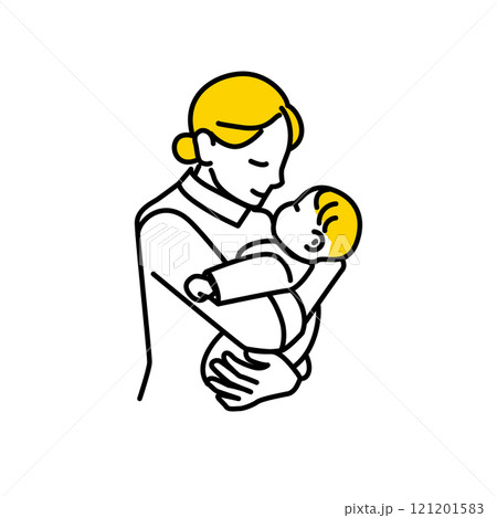 赤ちゃんを抱っこして微笑むお母さんのイラスト