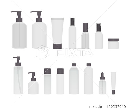 手書きの化粧品やスキンケア用品のボトルのイラスト素材セット