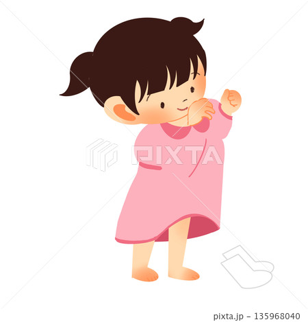 一人で着替えをする女の子のイラスト(全身)