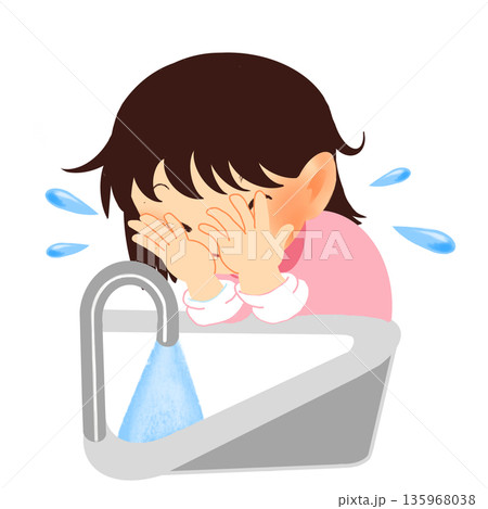 女の子の生活習慣イラスト|顔を洗う