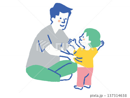 お父さんと着替える子供のイラスト