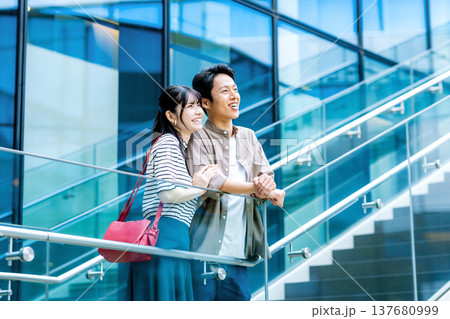 都会の街並み 屋上にいるカップル