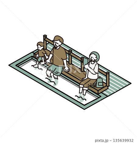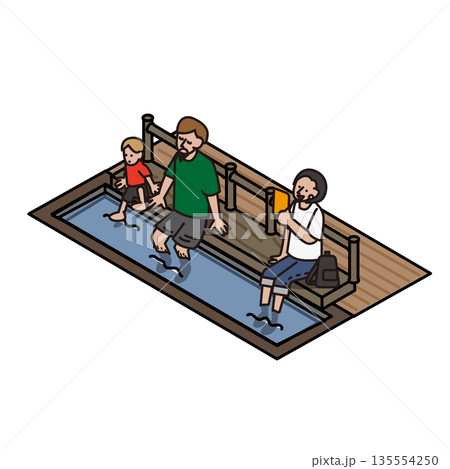 観光施設や公園にある足湯でくつろぐ人々のイラスト素材