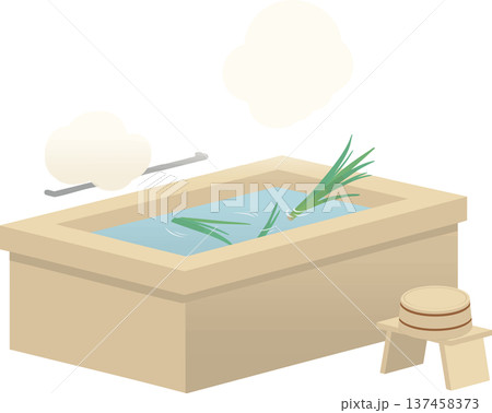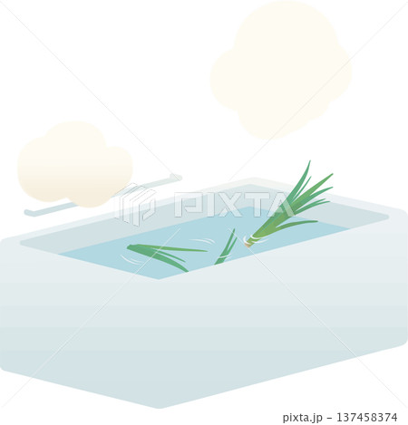 端午の節句の菖蒲湯(しょうぶ湯)のベクターイラスト 日本の伝統入浴文化
