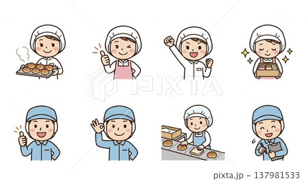 食品工場や給食職員のイラストセット