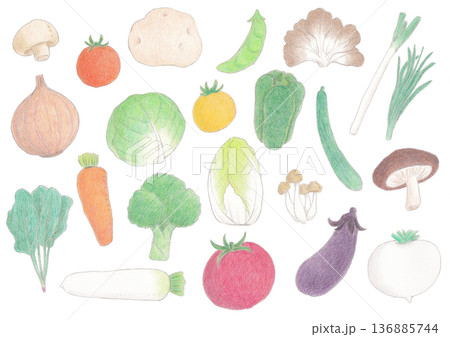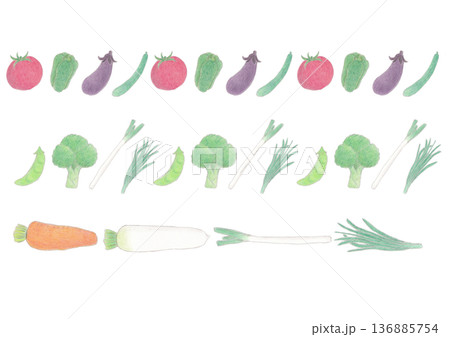 色えんぴつ画のいろいろな野菜のパターン