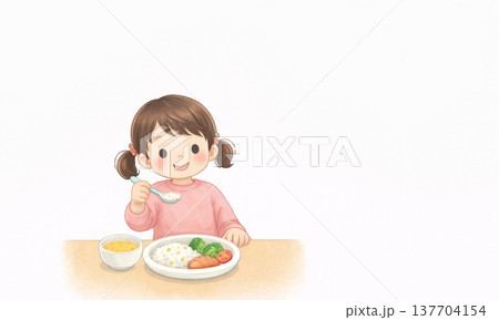 給食を食べる子どものかわいいイラスト
