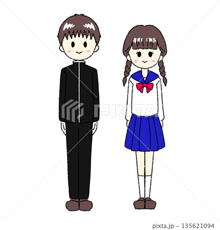 リーダーシップを発揮しそうな真面目な雰囲気 夏の制服を着た男女の学生 ベクターイラスト素材