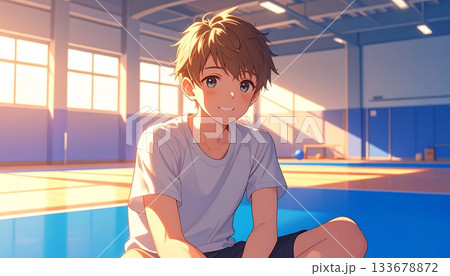 ジャージを着た男子生徒(男子高校生・男子中学生)の水彩イラスト