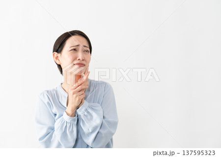 40代の女性 虫歯 白背景