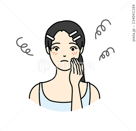 肌荒れに悩む女性のイラスト素材