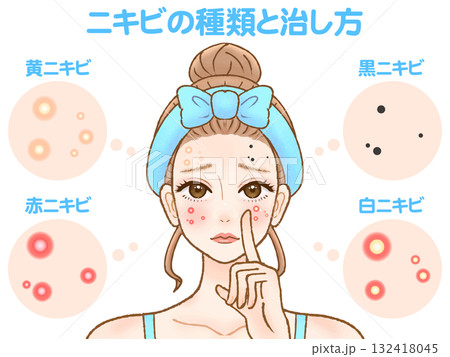 様々なニキビの症例と種類のイラスト素材セット4
