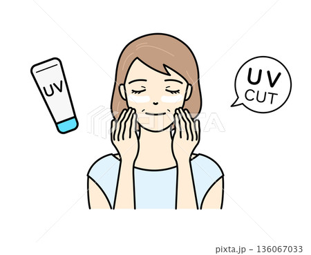 日焼け止めを顔に塗り紫外線をガードするシニア女性のイラスト
