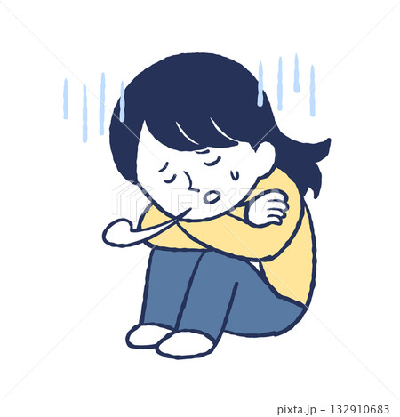 体育座りで考え事をしている後ろ姿の女性のイラスト素材