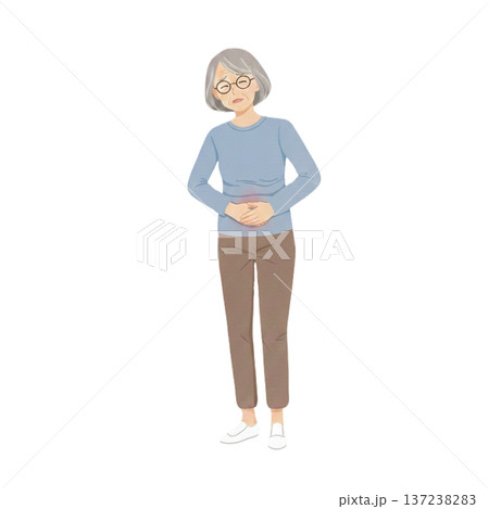 お腹を押さえる年配の女性イラスト