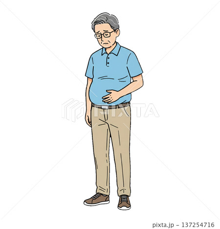 お腹の悩みがあるシニア男性のイラスト素材