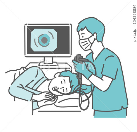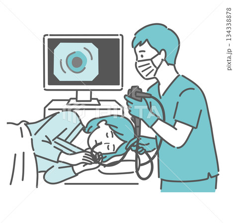 内視鏡検査をする、男性のアイコン(線画カラー)のイラスト