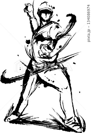 ピッチャーの墨絵イラスト