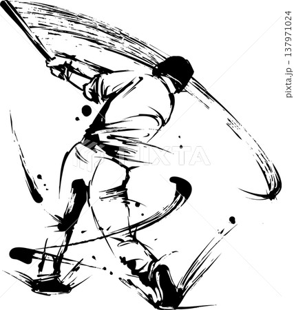 野球のバッターの墨絵イラスト