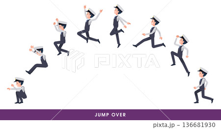 大きく飛び越える運転手男性のセット