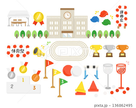運動会のイラストセット 学校行事 ベクター素材