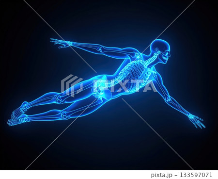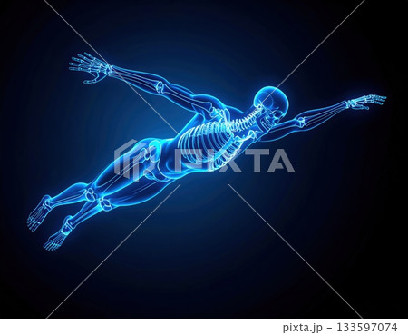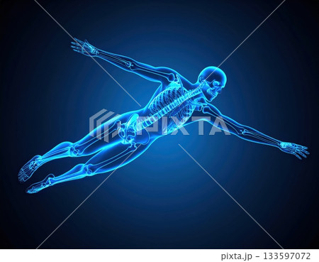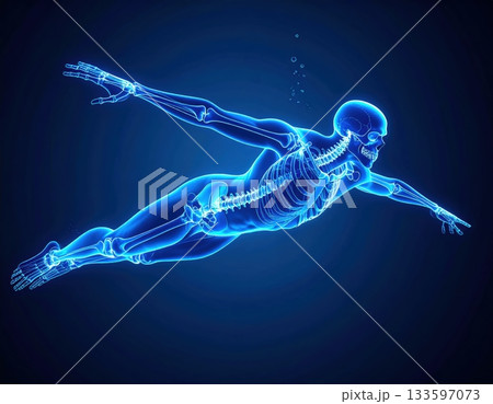 水中を泳ぐスイマーの解剖図:クロールのフォームと全身運動