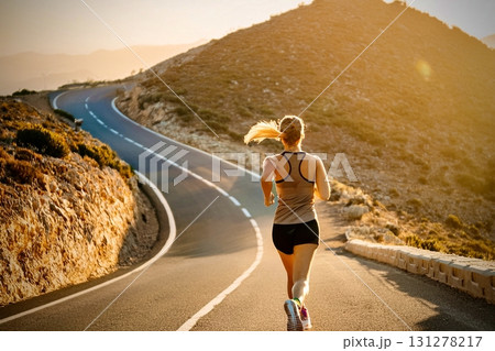 国際的なスポーツ大会のマラソンを走るマラソンランナー。
