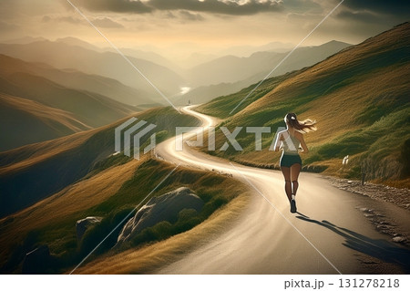 Runner silhouette overlaid with road map and speed lines representing fitness