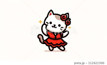 赤色の衣装を着てフラメンコを踊る猫のイラスト