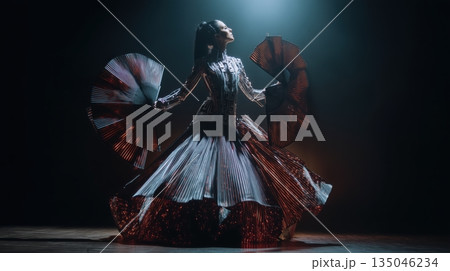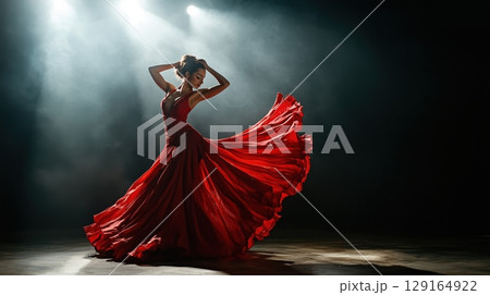 赤いドレスで舞う情熱的なフラメンコダンサー