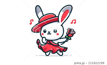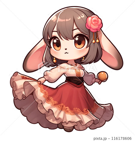 赤色の衣装を着てフラメンコを踊るウサギのイラスト