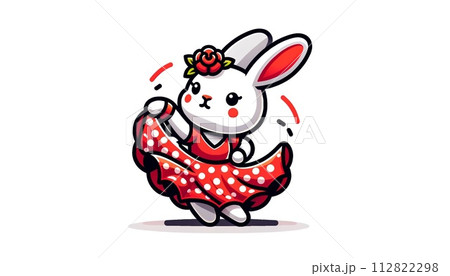 水玉模様の衣装を着てフラメンコを踊るウサギのイラスト