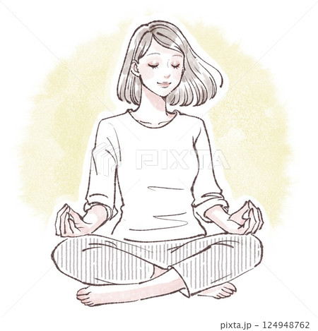 瞑想・ヨガをしている女性のイラスト(色付き)