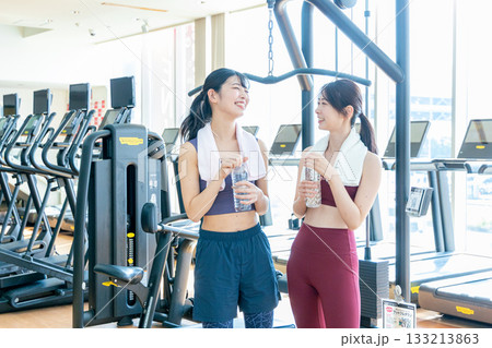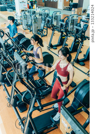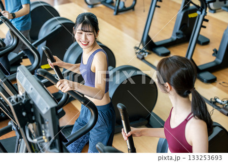 スポーツジムでトレーニングをする若い男女 撮影協力:スポーツクラブ&サウナスパ ルネサンス 幕張24