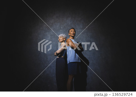 AI-generated 日本人カップルがジムでペア・トレーニングをするシーン