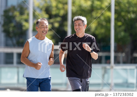 ランニングするシニア男性