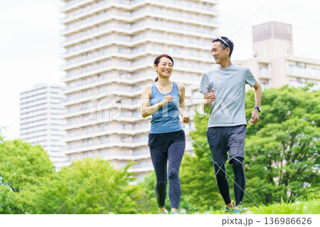 ジョギングをするミドル夫婦
