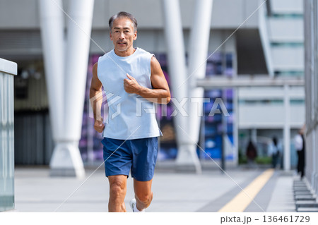 ウォーキングする 散歩する 男女 シニア夫婦 運動する人 セット販売