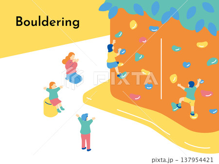ボルダリングを楽しんでいる子供たちのイラスト