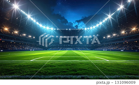 夜のスタジアム: 輝くフィールドと観客の熱狂