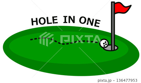 趣味のゴルフで奇跡的にホールインワンするイラスト