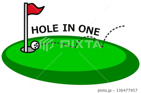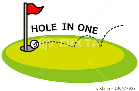 趣味のゴルフで奇跡的にホールインワンをするイラスト