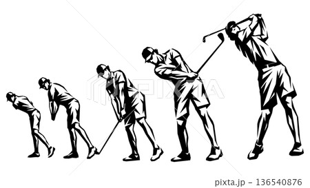 ゴルフのスイングをする男性のシルエット(連続フォーム)