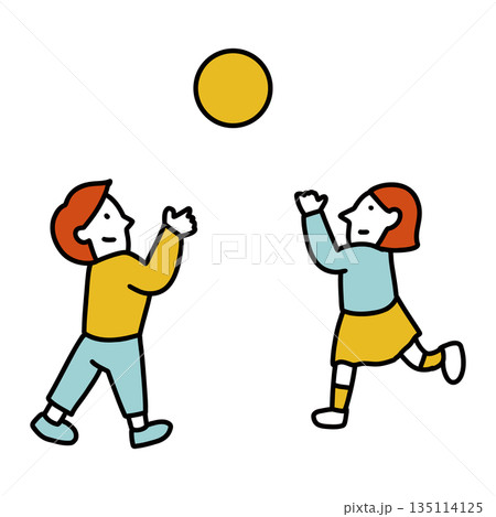 ドッジボールをして遊ぶ男の子と女の子 イラスト