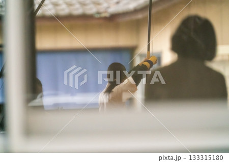 着物を着た通し矢を待つ女性 三十三間堂にて