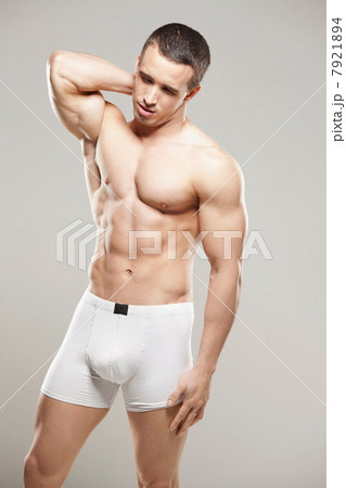 Bodybuilder rubbing neck