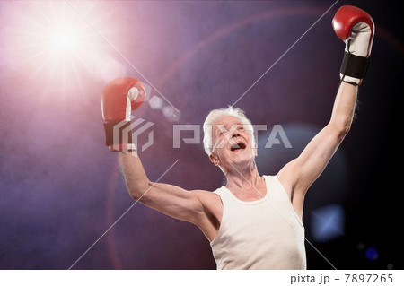 Senior male boxer cheering