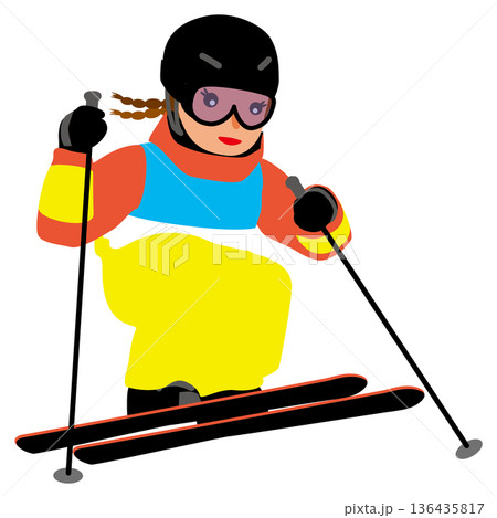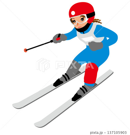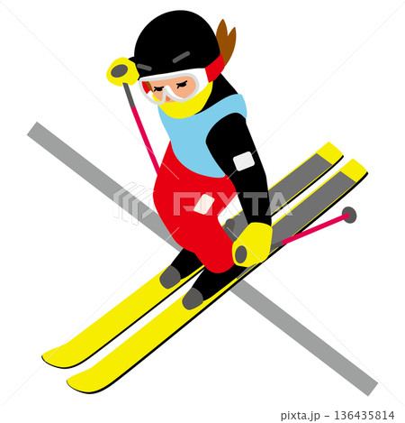 ウインタースポーツの試合に挑む女子のイラスト・アルペンスキー01