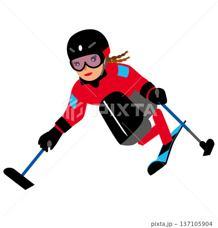 ウインタースポーツの試合に挑む女子のイラスト・パラアルペンスキー03