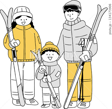 スキーウエアを着た親子単色